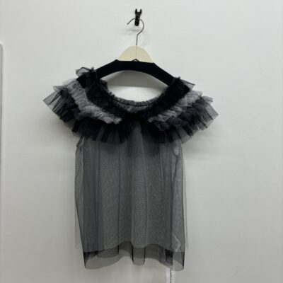 華やかなチュールブラウスです! プリントチュール生地で3WAY出来るお得なブラウスを作りました。ゴム部分を衿にもってきても、肩まで下げてオフショルにしても、着る人によってアレンジ可能...