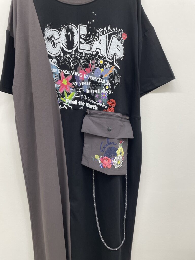 アートコラージュ柄プリーツパンツ
