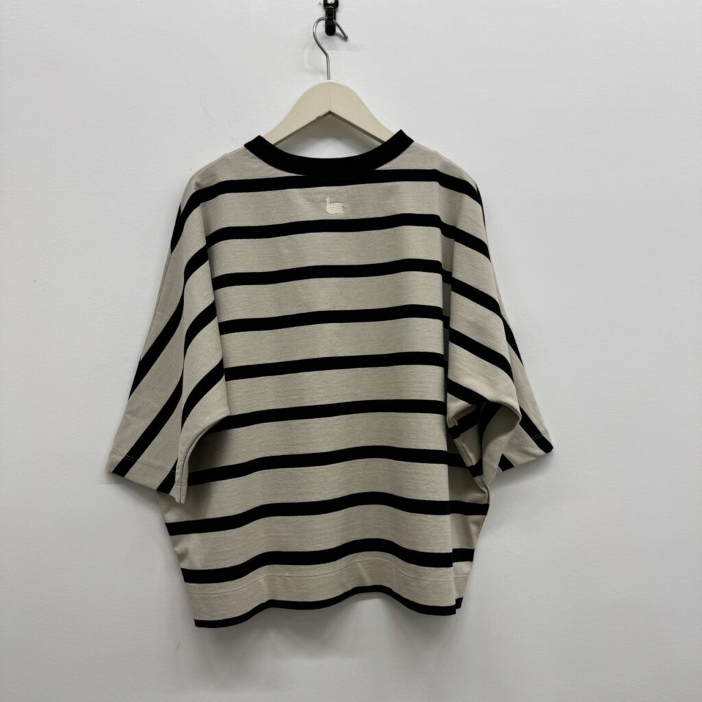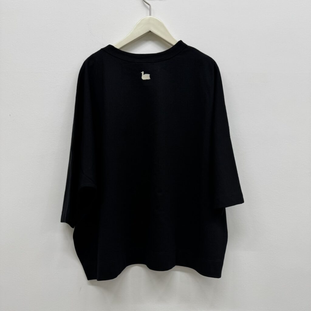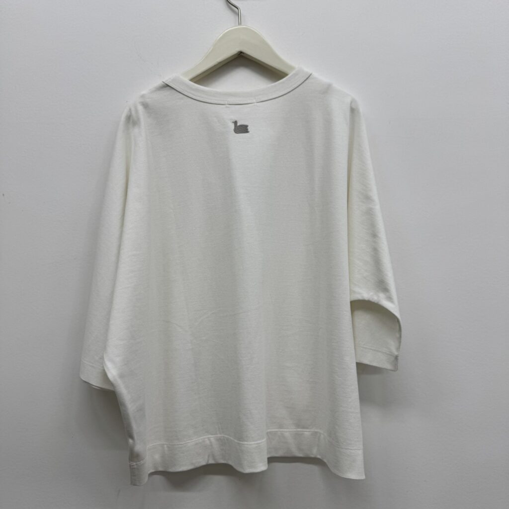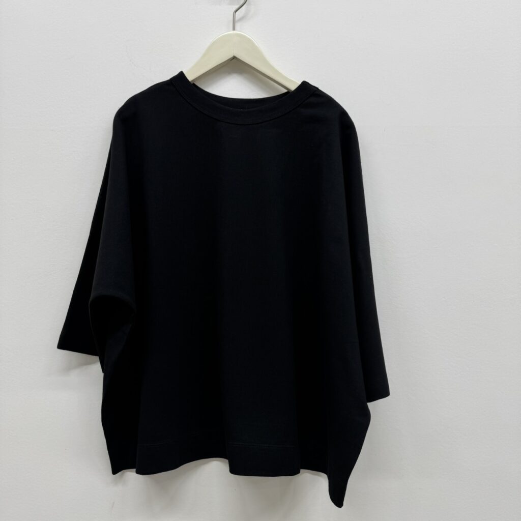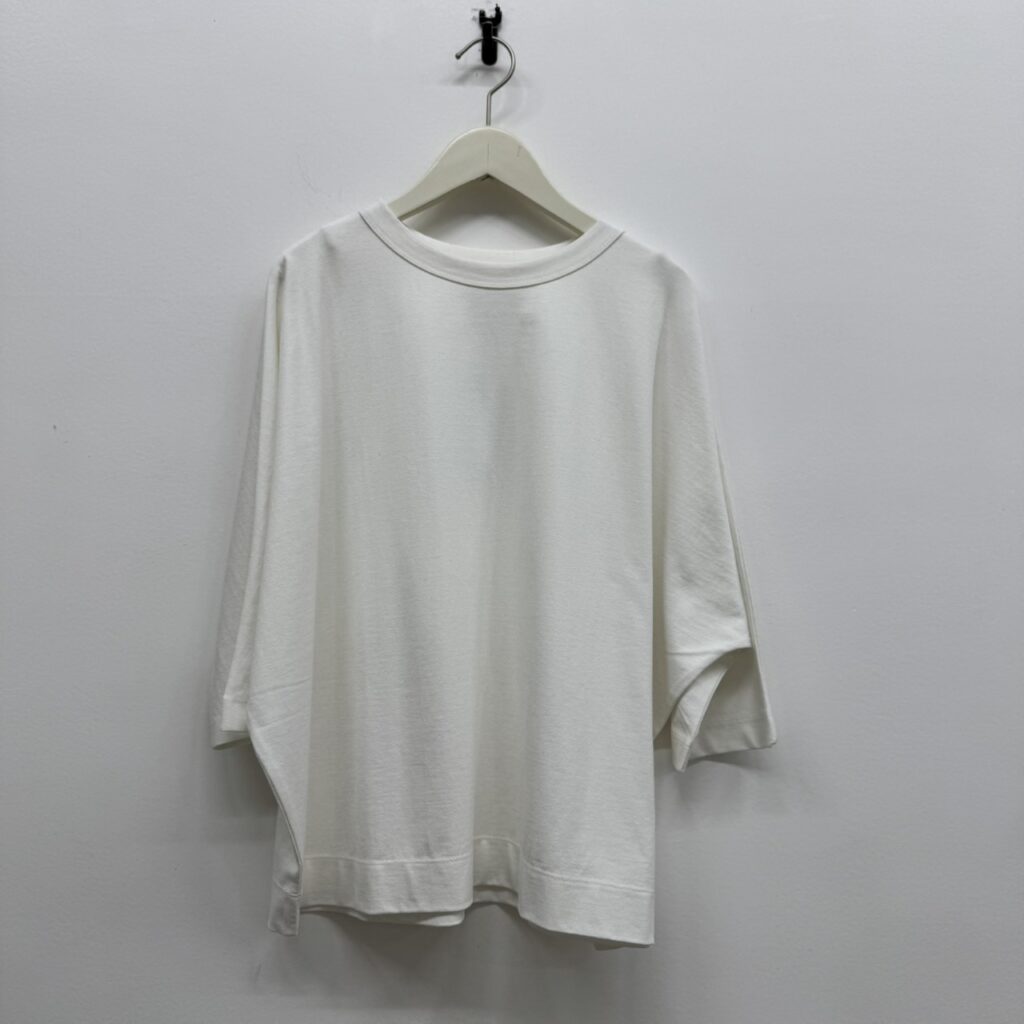 肩のラインが綺麗なドルマンシルエットの5分袖で、カジュアルすぎない大人シルエットのTシャツです。