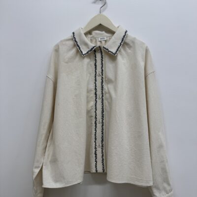 粗野な平織りのコットン生地にミモザの刺繍を施したブラウス。 強度がありながらも肌に馴染むやさしい気ごこちはどこか古着のような雰囲気。 カーディガンやアウターを羽織った時も、...