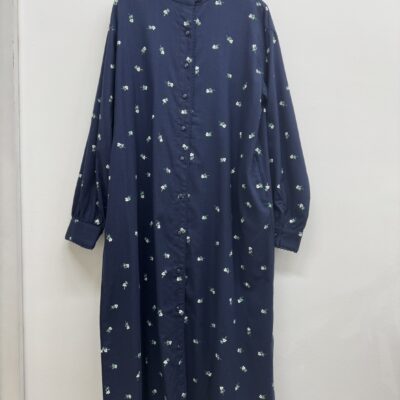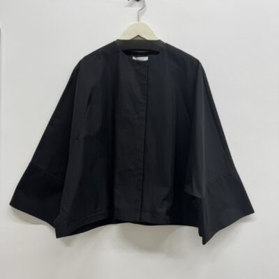 衿端・袖口・裾はメロー始末で軽やかに仕上げ、並んだボタンがさりげないアクセントになっています。