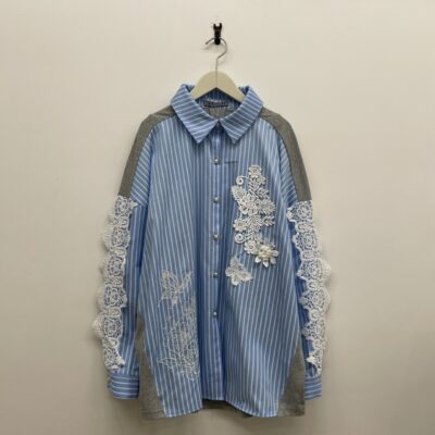 ジャージ×デニム×花柄のリメイク風ブルゾンです! 裾の段差と脇のロゴテープがアクセントになった存在感ある一着です! カジュアル&スポーツテイストをミックスした使い勝手の...