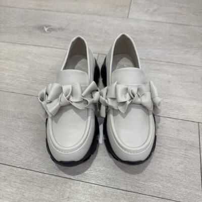ローファーの上品さに、スニーカーの軽やかさを合わせた一足。 アッパーには立体的に結んだリボンをそっと添えて。 柔らかいフェイクレザーで足馴染みも◎ 中敷にはリボンステ...