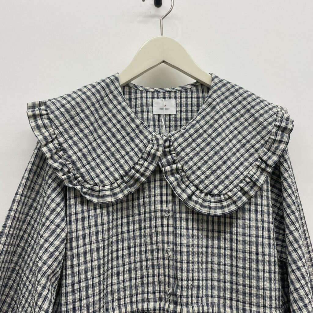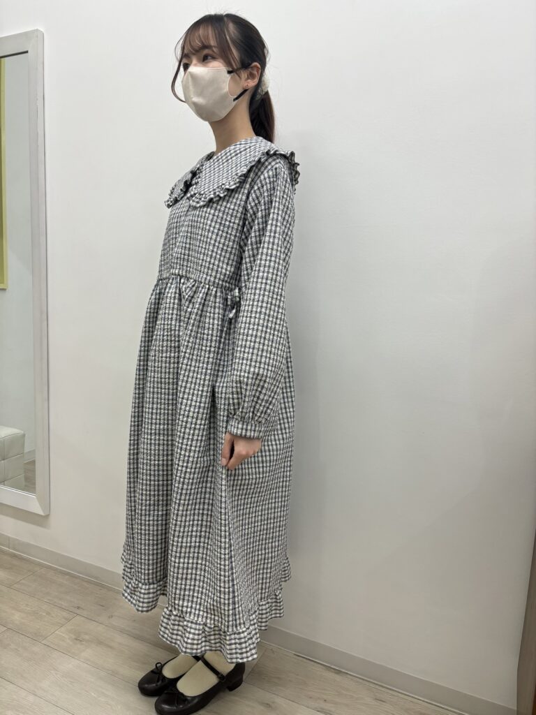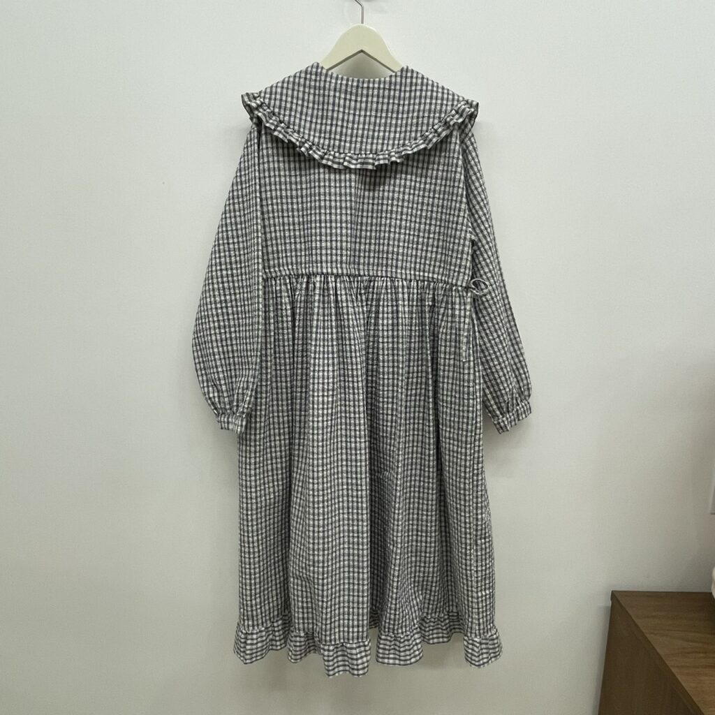 軽やかな春チェックで仕立てた、フリル襟のワンピース。