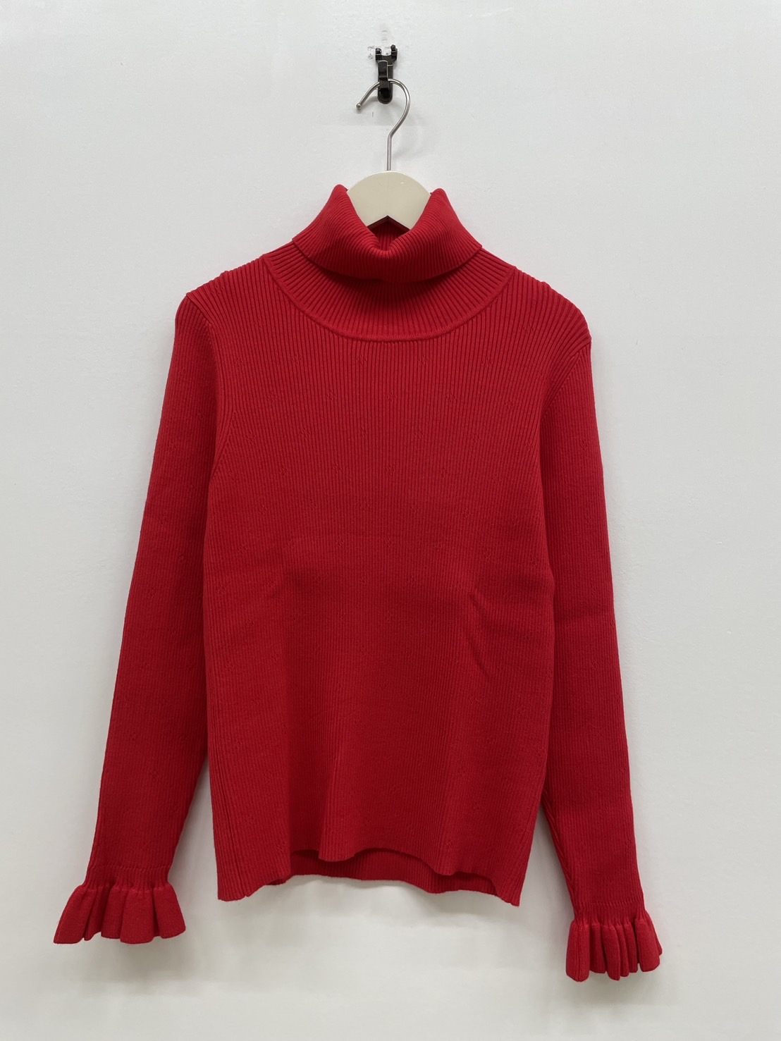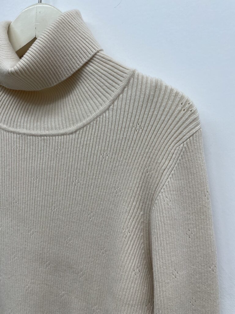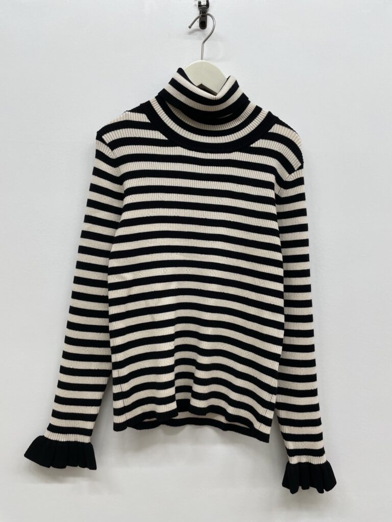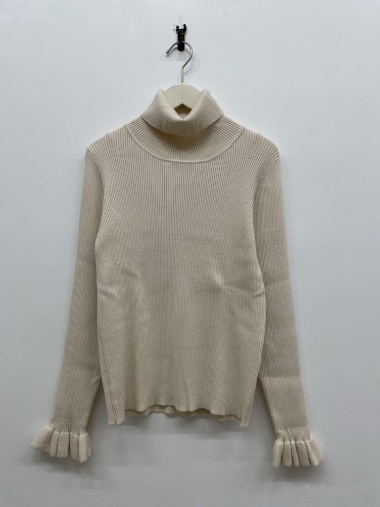 今年は袖の大ぶりなフリルとお花のような柄でシンプルで使いやすさを残しつつも、デザイン性がしっかり光る他にはないような特別感のあるタートルニットです!