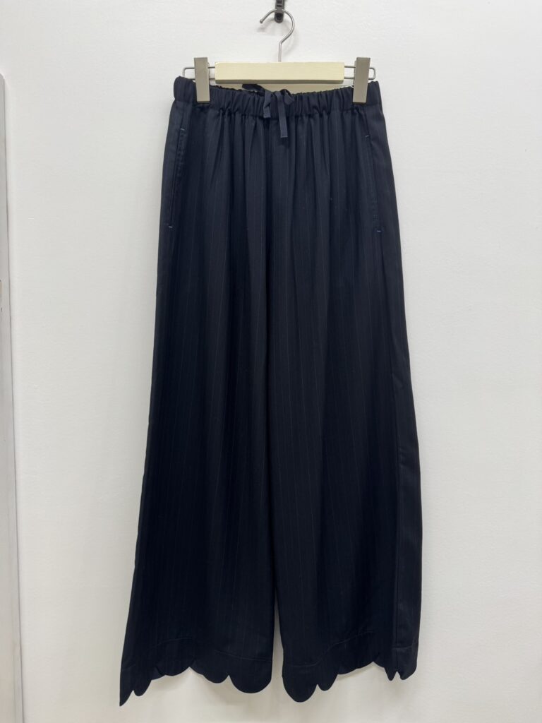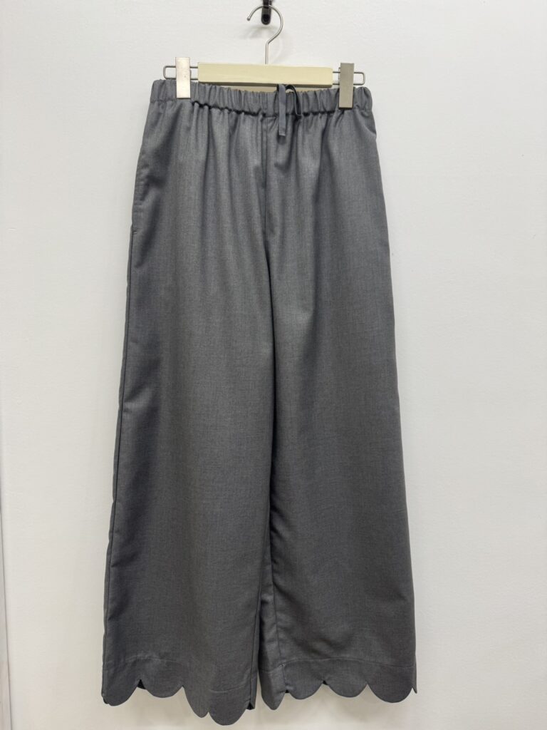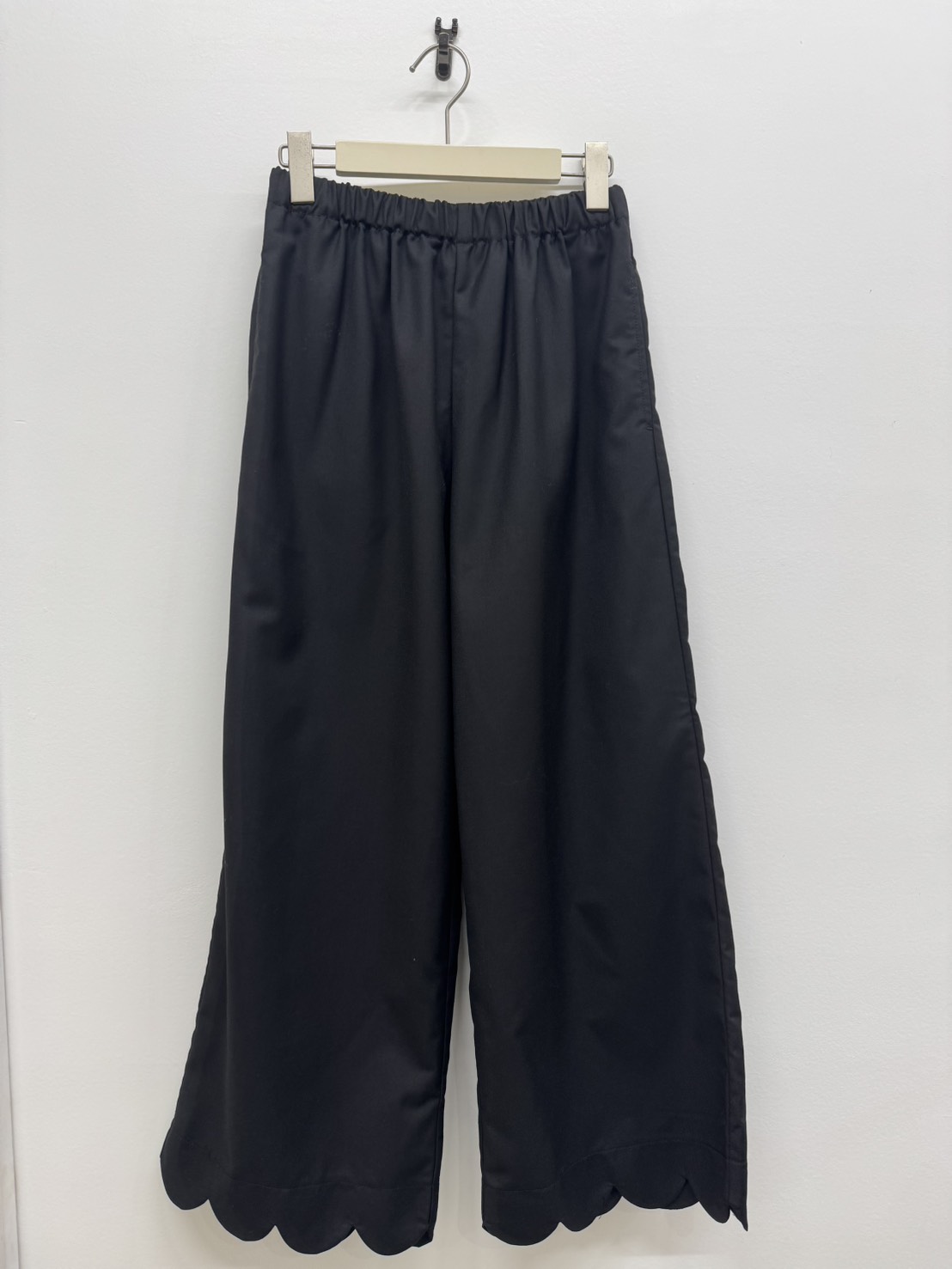 きれいめ素材で仕立てたPOU DOU DOUらしいスカラップディテールのパンツです。