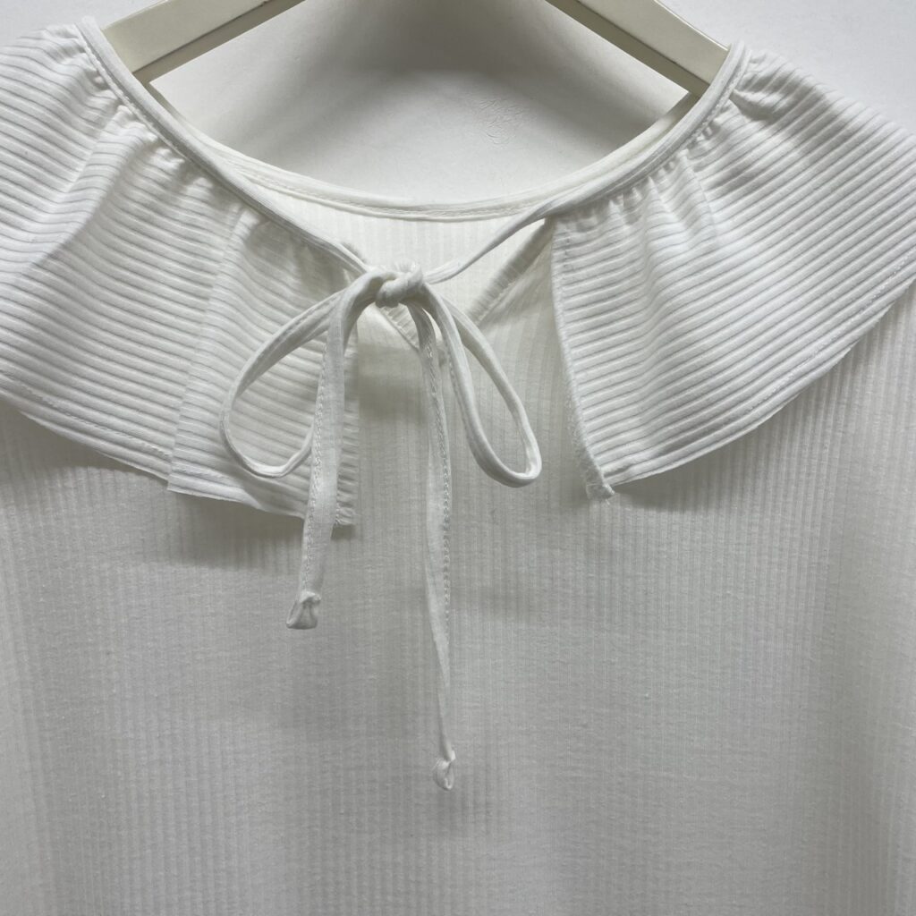 前後どちらでも着られる2wayのデザイン。伸縮性に優れ、肌触りが良いトタンテレコ素材を使用しました。