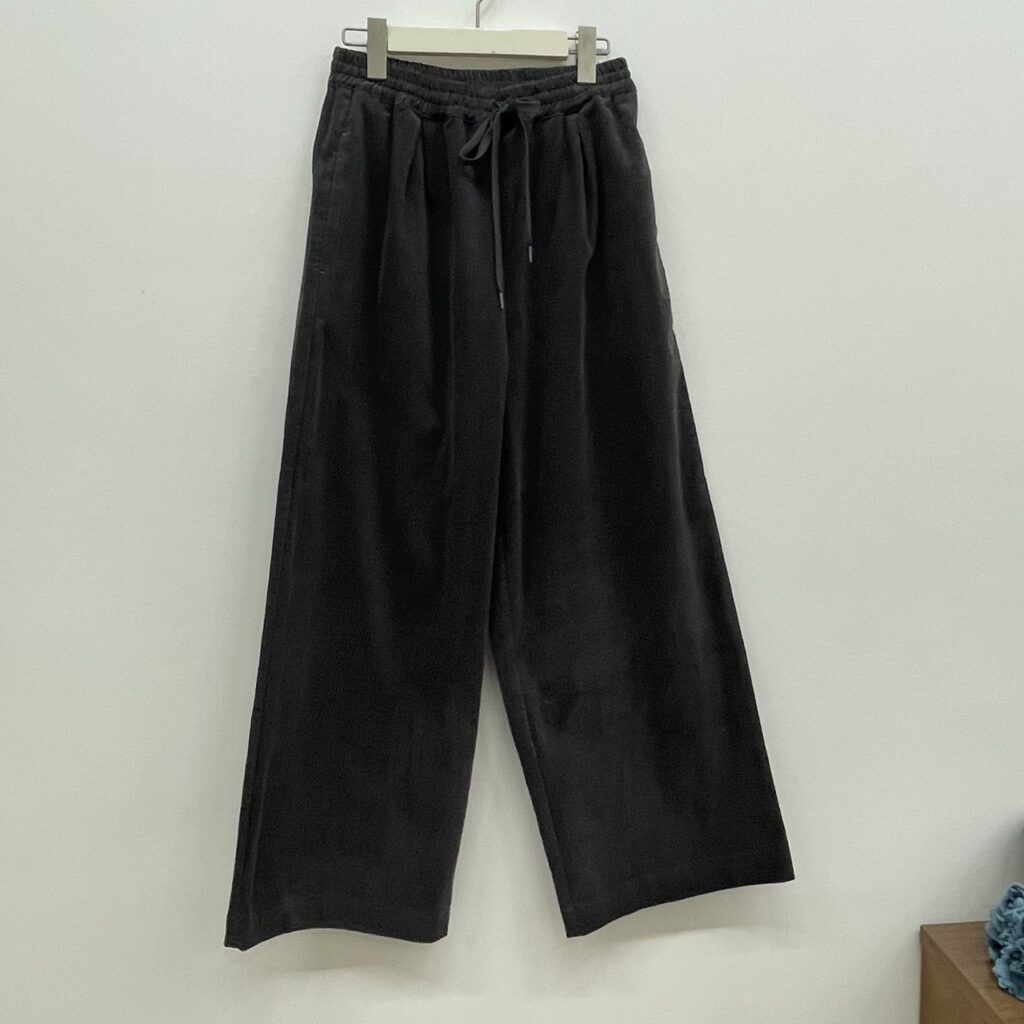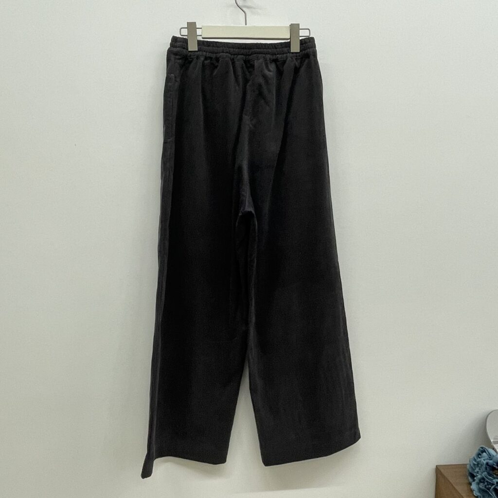 程よいカジュアル感のあるコーデュロイ生地仕立てのイージーパンツ。ややワイドでボリューム感のあるシルエット。両サイドポケット付き。