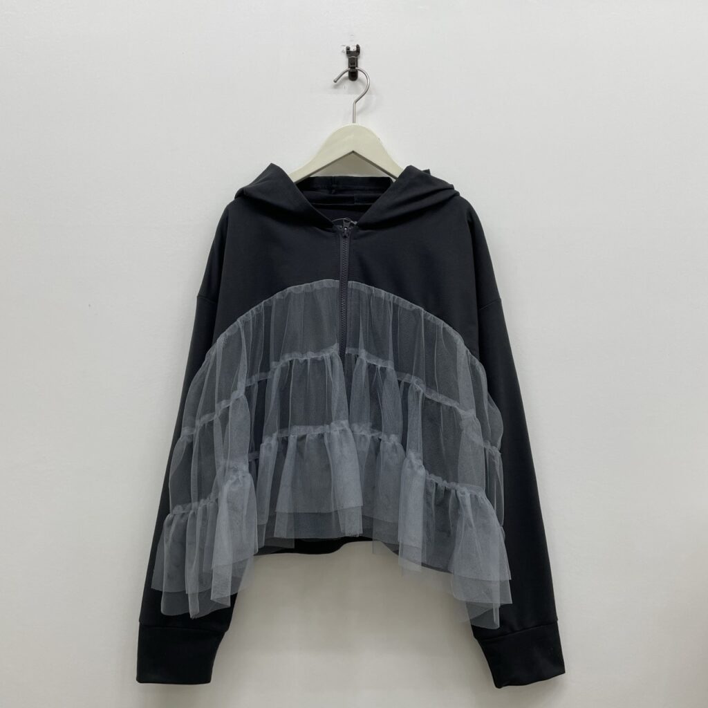 無地でカジュアルながらも、チュールのボリューム感がコーデに華やかさをプラスしてくれます!