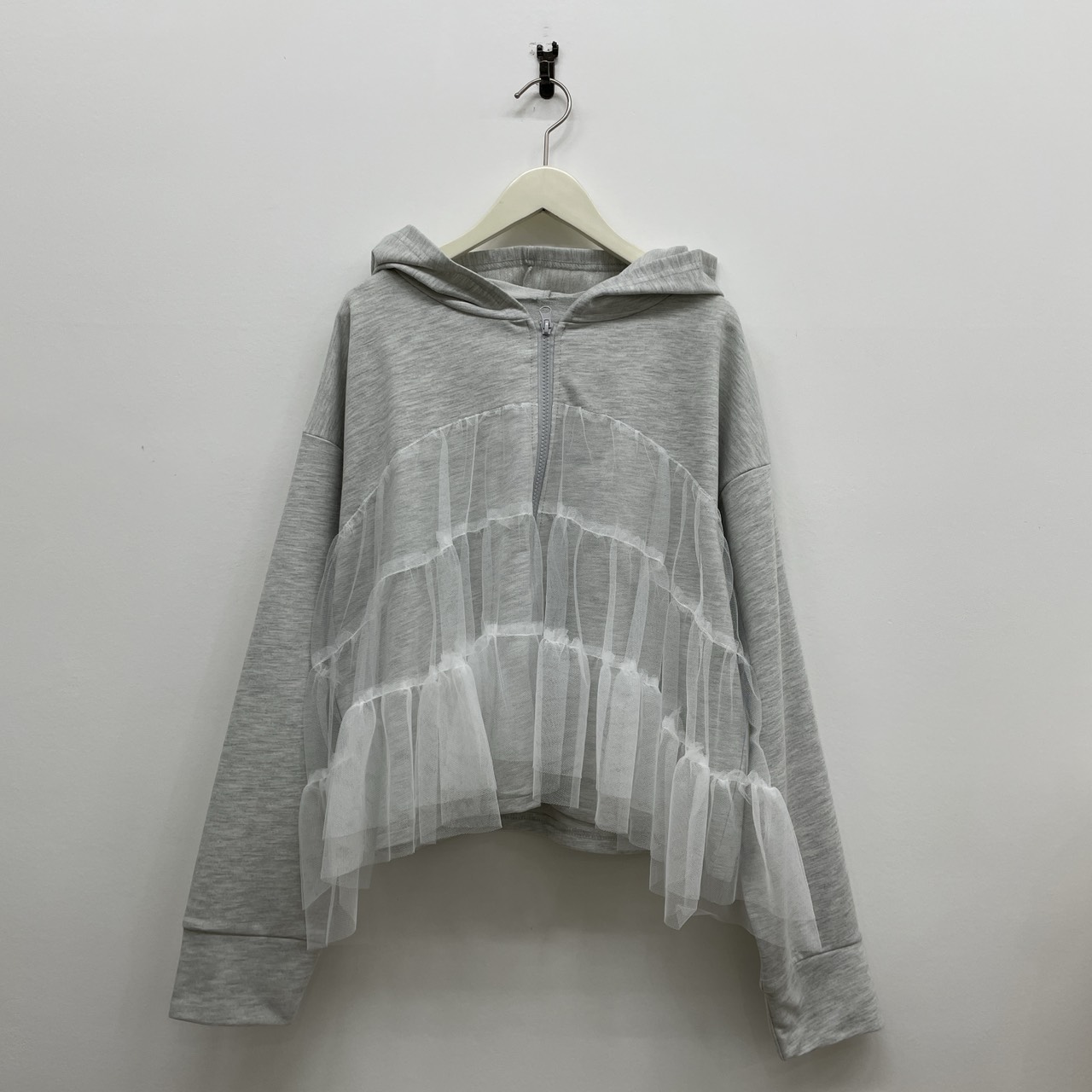 無地でカジュアルながらも、チュールのボリューム感がコーデに華やかさをプラスしてくれます!
