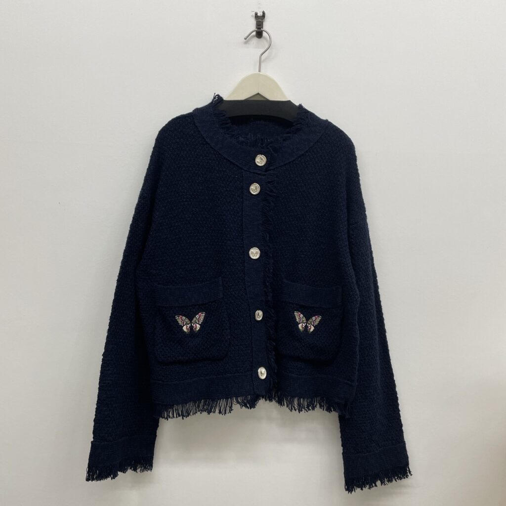 蝶刺繍×蝶ボタン付きニットカーディガン