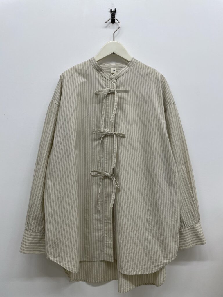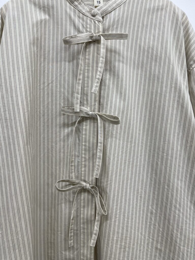 メンズのシャツのようなゆったり長めのシルエットにフロントのリボンが良いアクセントになります!