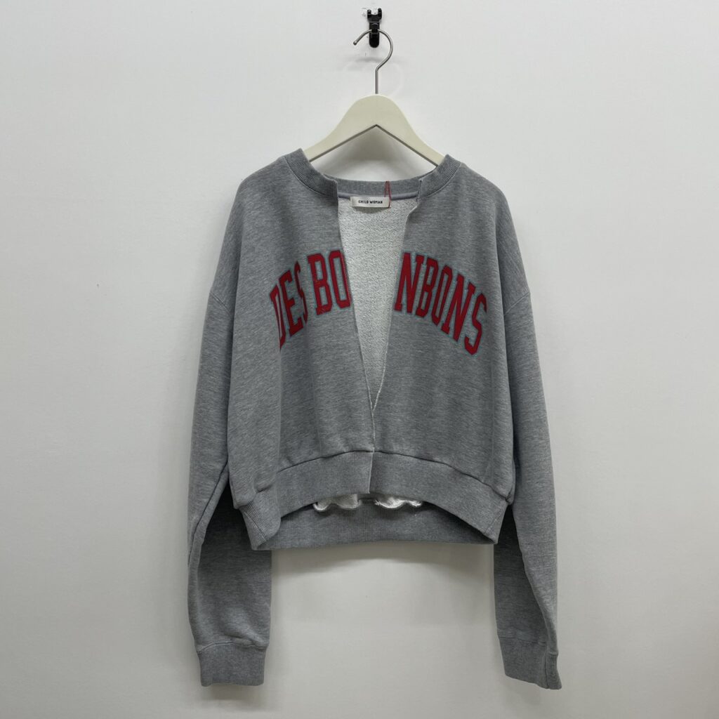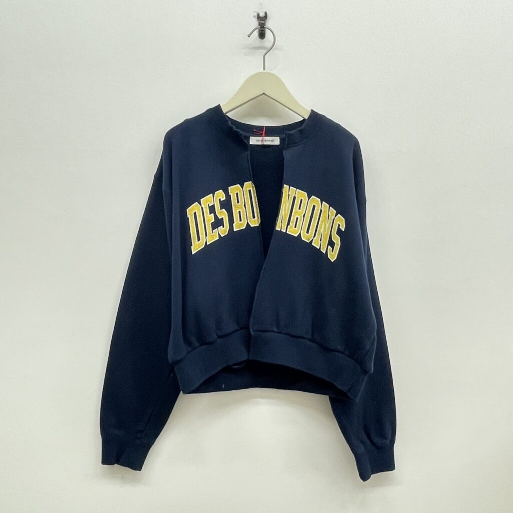 XLの大きめなスウェットをベースにプリントを施し、大胆に前中心をカットしてカーディガンに仕上げた特別感のある一着です!