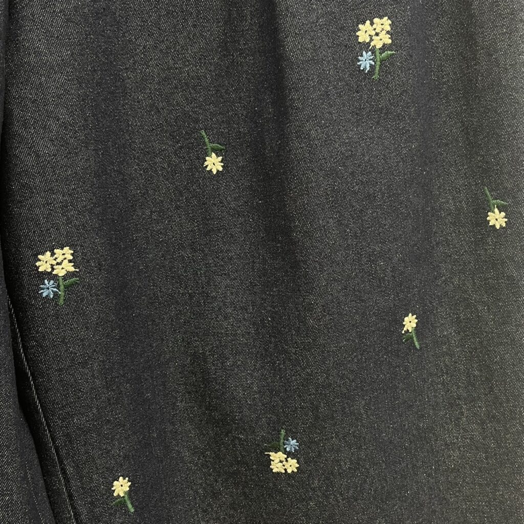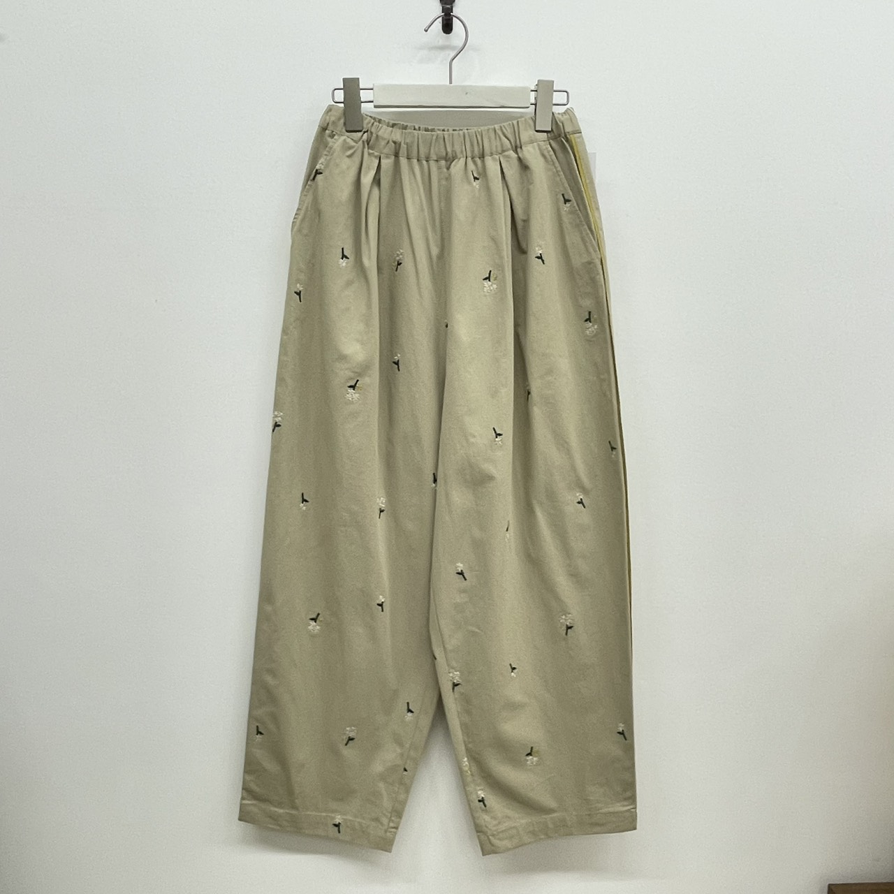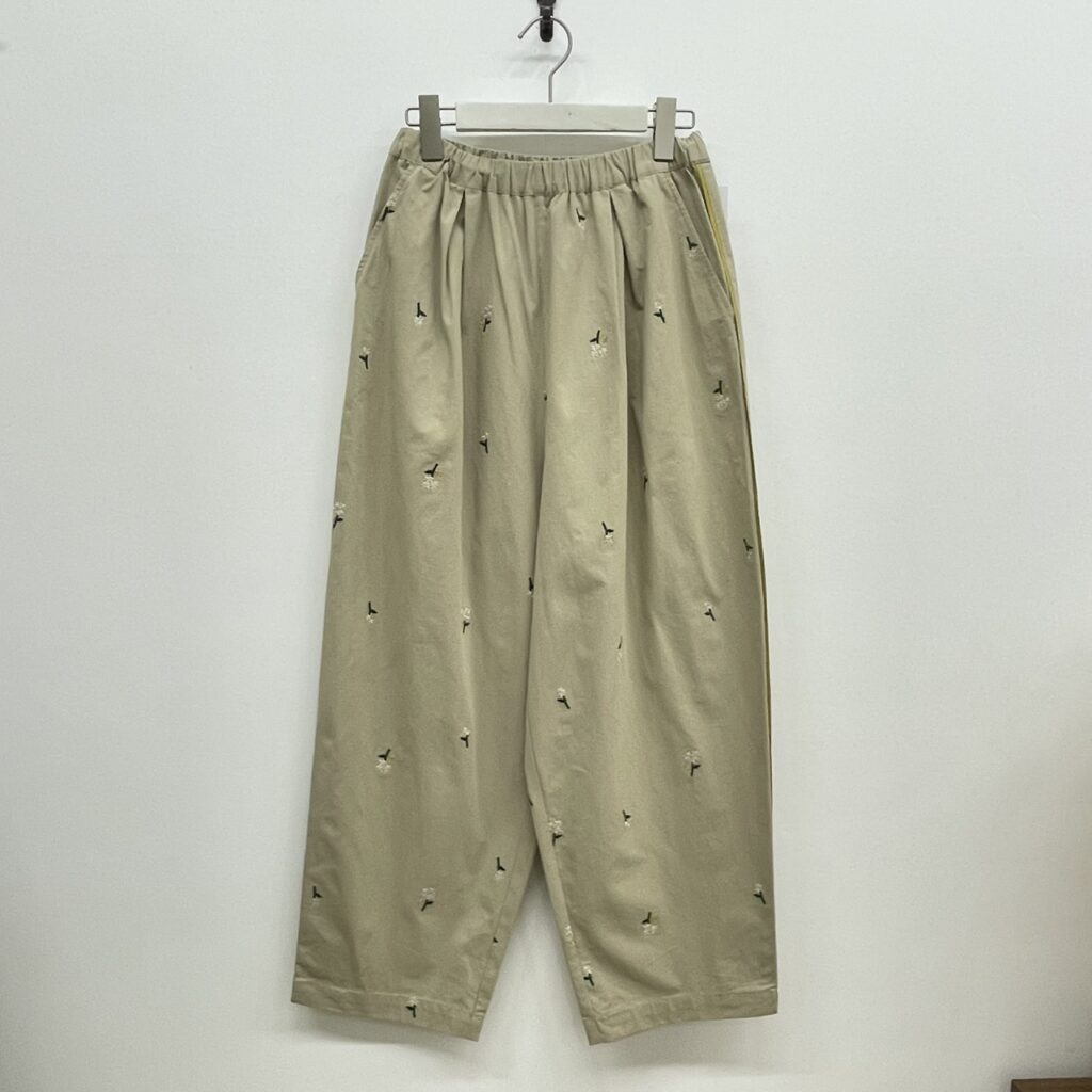 コットンツイルとデニムにオリジナルのフラワー刺繍を載せたテキスタイルで仕立てたパンツです!
