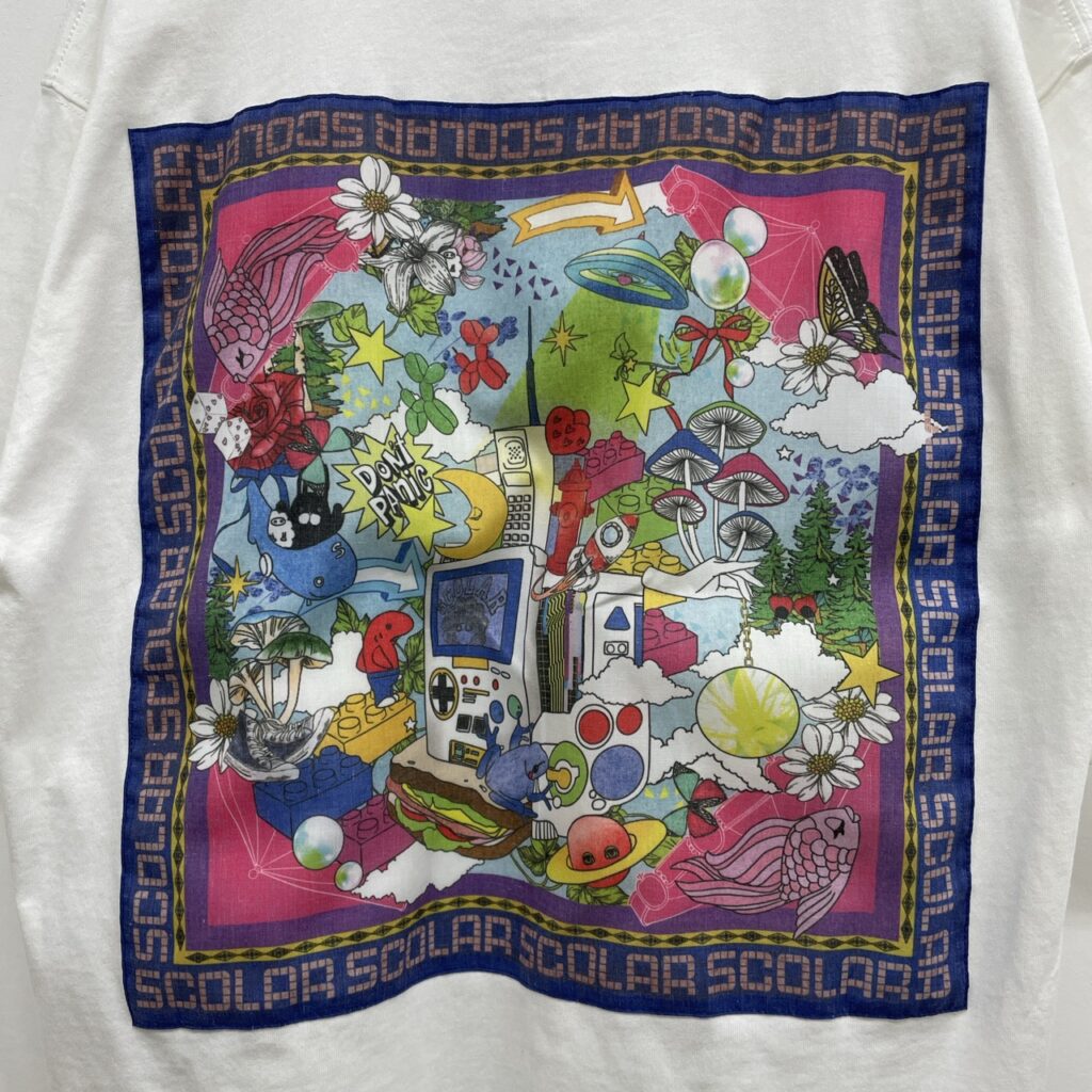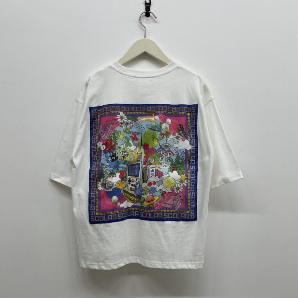 フロントはスカラーのネーム入りポケットでシンプルに背中にはスカラーならではのポップなBIGアップリケをあしらった 後ろ姿が映えるデザインTシャツです!
