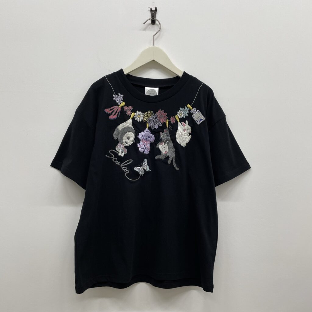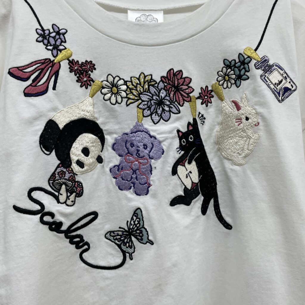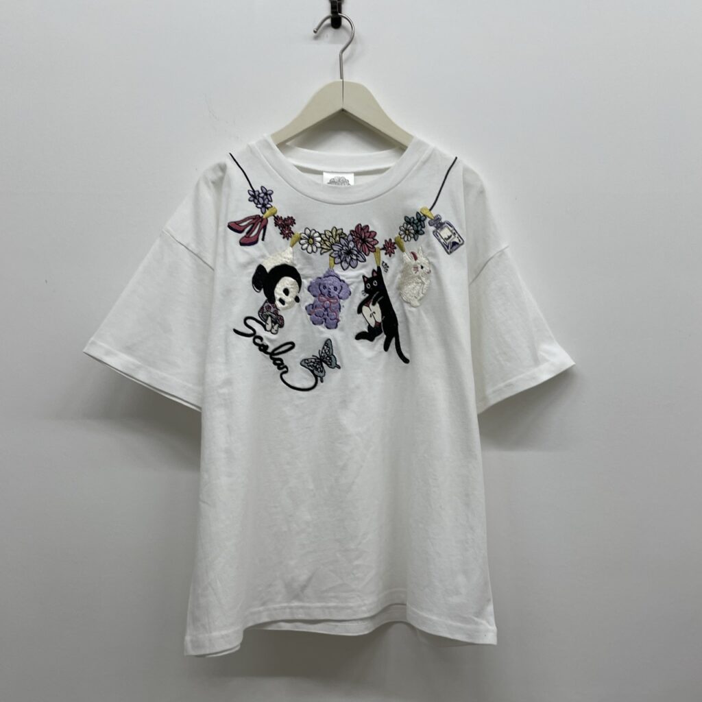 お花やパンダ、プードル、ネコ、ウサギなど…愛らしいモチーフの刺繍入り首元にネックレスのようにあしらわれた刺繍が、コーデに華やかさをプラスしてくれます!