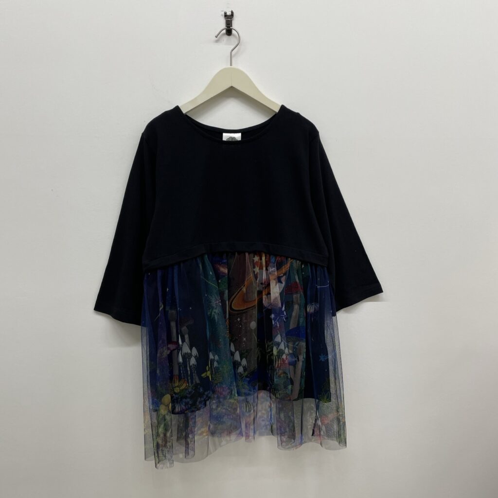 少し長めのチュールで、ボトムスの色や柄との重なりも楽しめます!