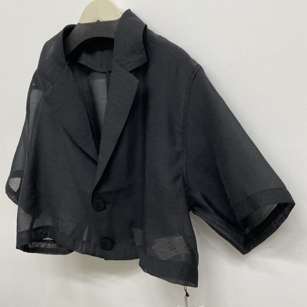 程よい透け感のシアー素材を使用した、初夏から夏まで活躍するハーフスリーブジャケットです!