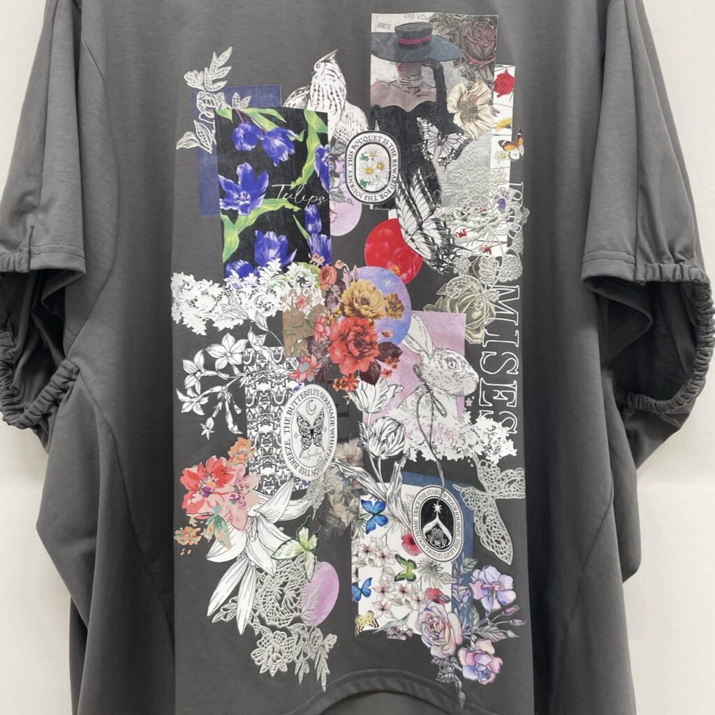 花コラージュ柄シルケット天竺チュニック