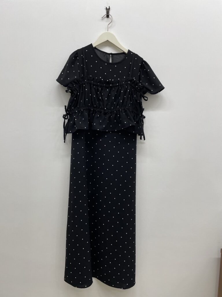 このワンピースとビスチェのセットは、立体感のあるシルエットが特徴です!
