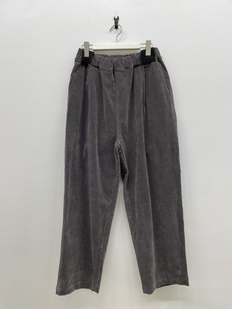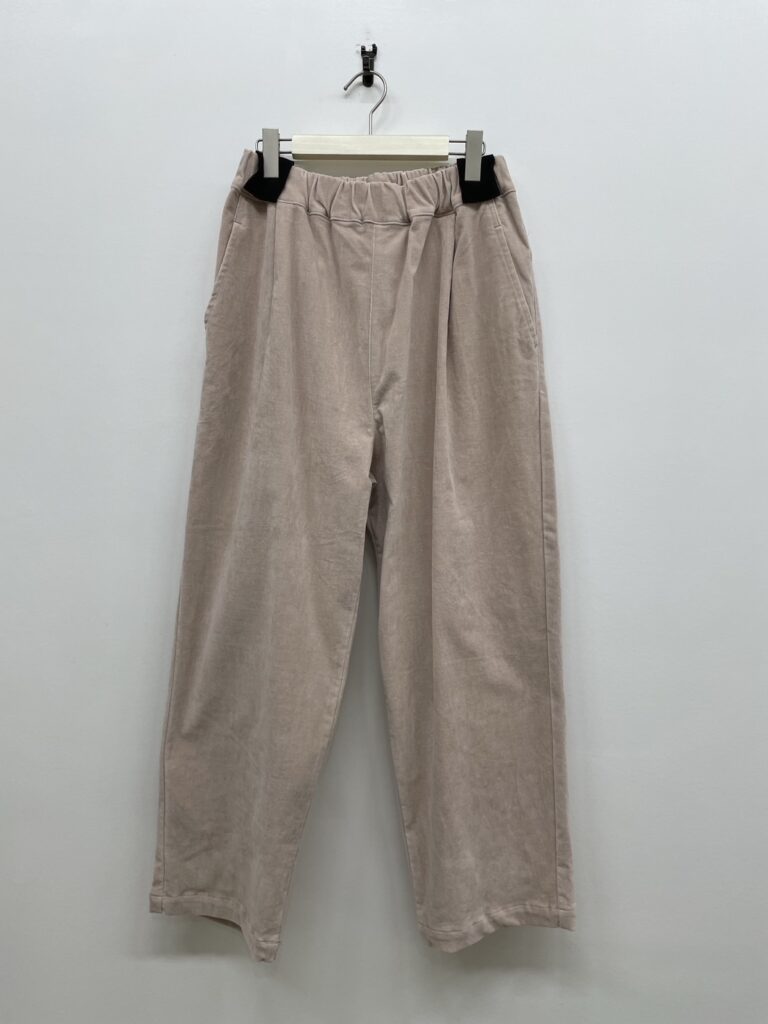 柔らかな風合いでヴィンテージ感もある佇まい、生地が特徴的なので、シルエットはシンプルにセミワイドパンツで甘くなりすぎないシルエットで大人っぽく履いていただけます!