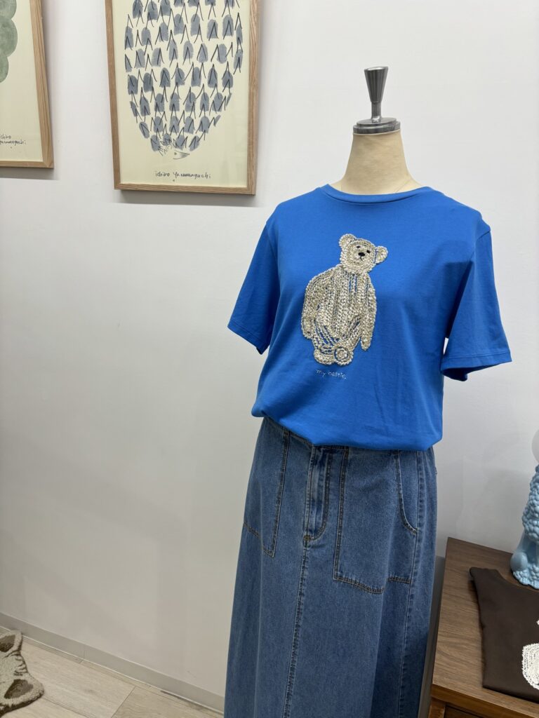 ゆるっとしたくまのぬいぐるみがコーディネートのポイントになってくれます。