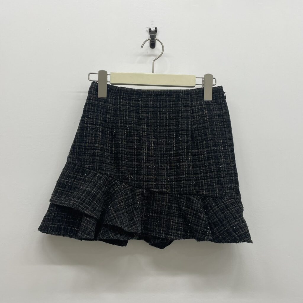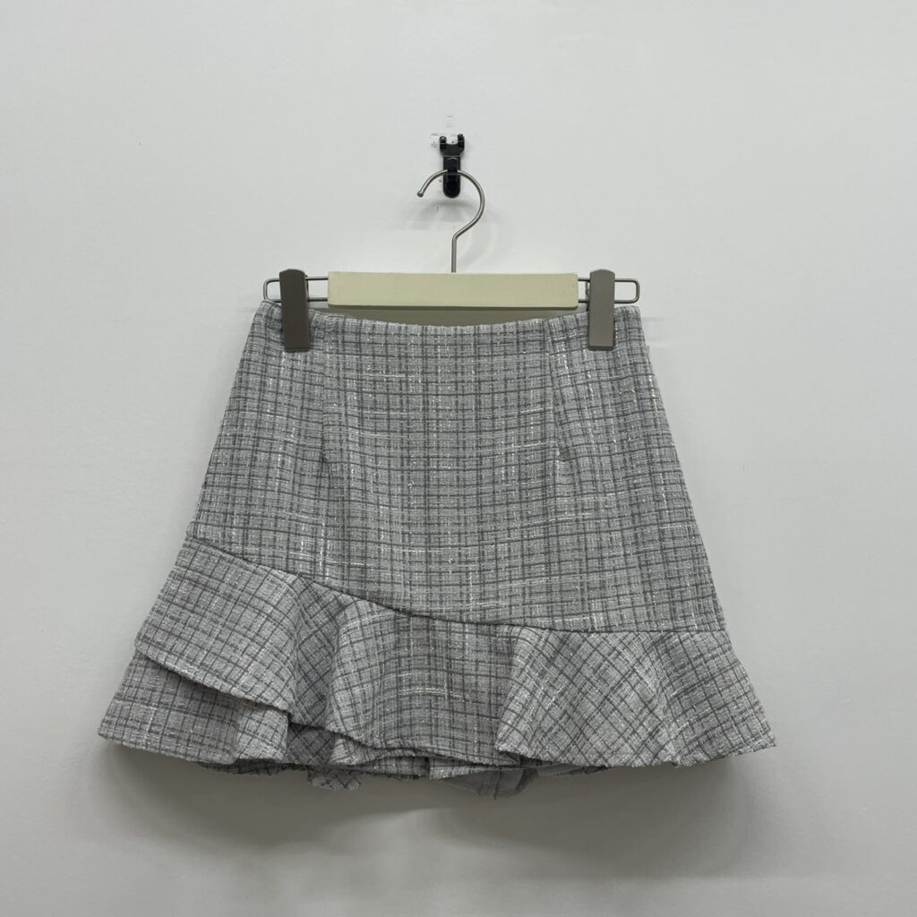歩くたびに揺れるフリルがフェミニンさを引き立てて、女性らしい美シルエットを演出します。シンプルながら動きのあるデザインで、トップスを選ばずコーディネートの幅が広がるアイテムです。