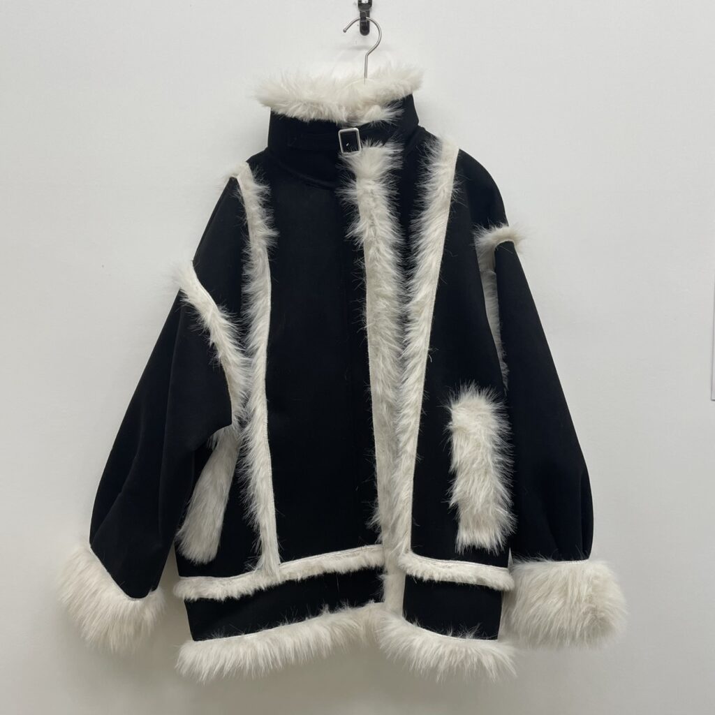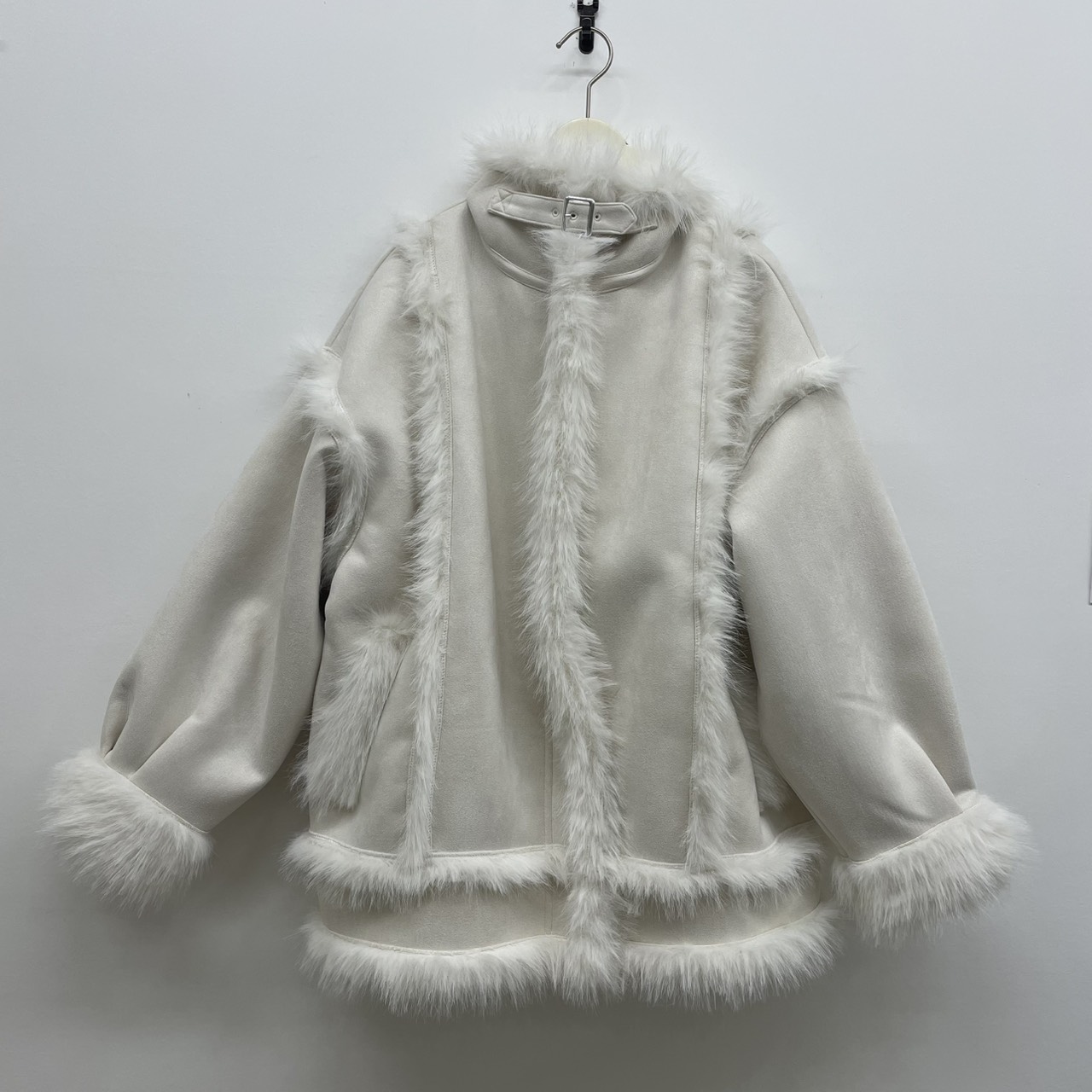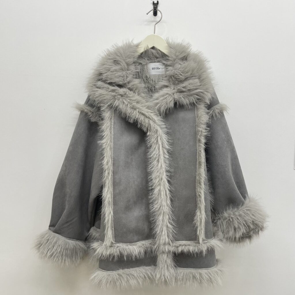 ふんわり柔らかなフェイクムートン素材を使用したミドルコート。