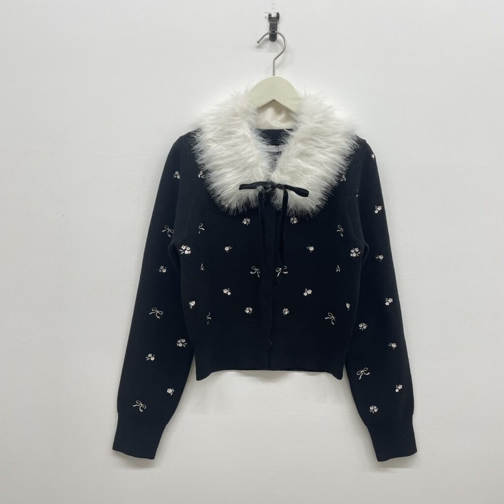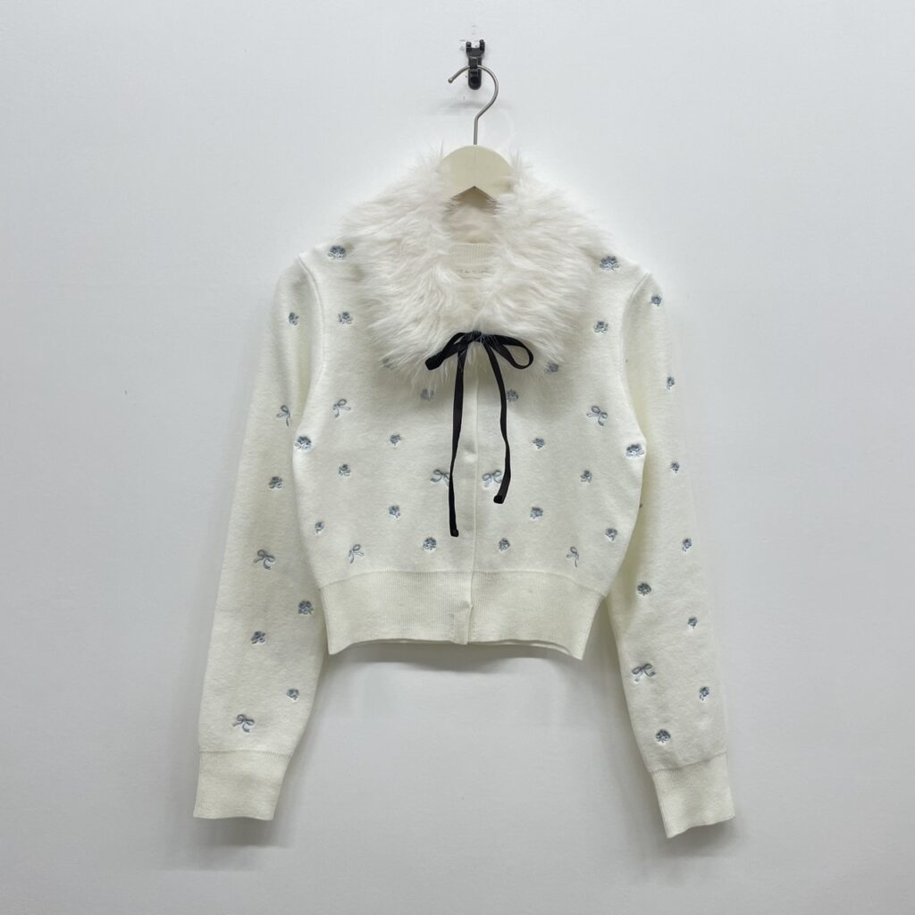 ニット全体に小花柄の刺繍が散りばめられて、ロマンティックで可愛らしい印象です。