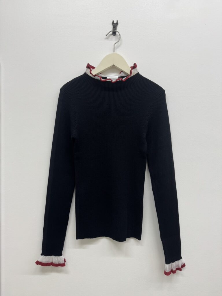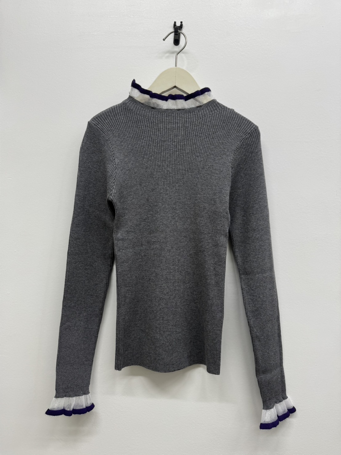 フリルの華やかさに、透明テグスならではのシアー感がふわっと軽やかに漂う、一枚でもレイヤードでも活躍するバイカラーニットが登場。