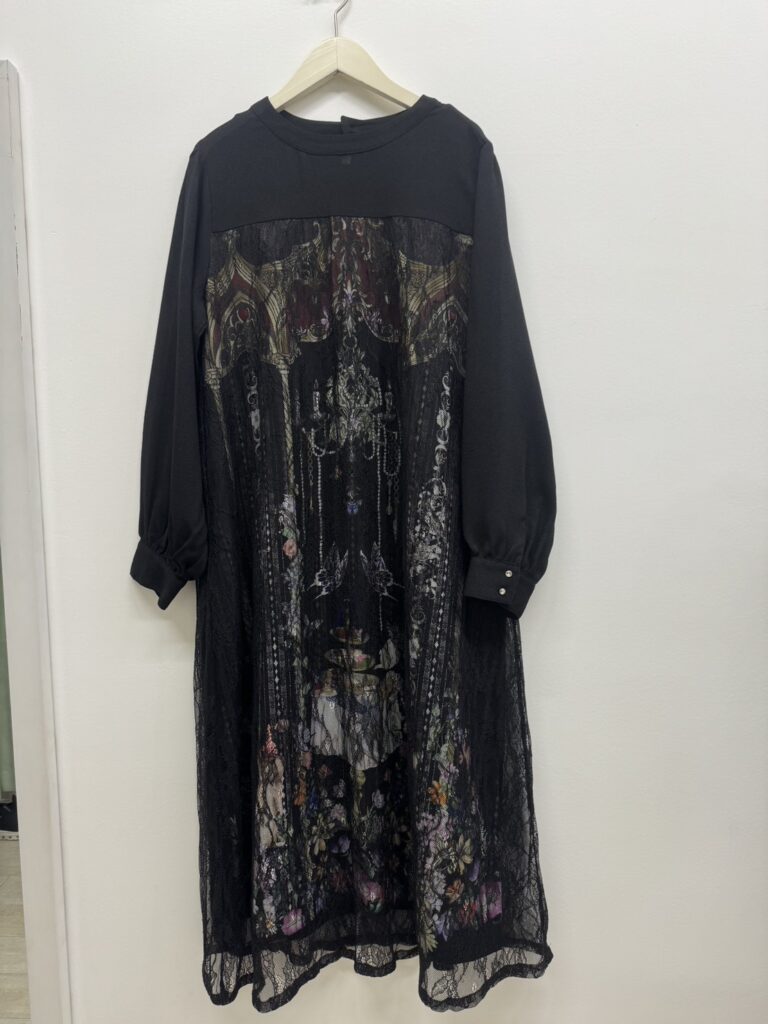 動物たちがひそやかに開くティーパーティーをイメージした鮮やかなプリントに繊細なレースを重ねたロマンティックなワンピース。