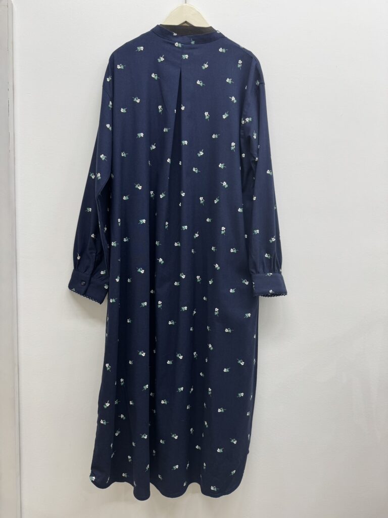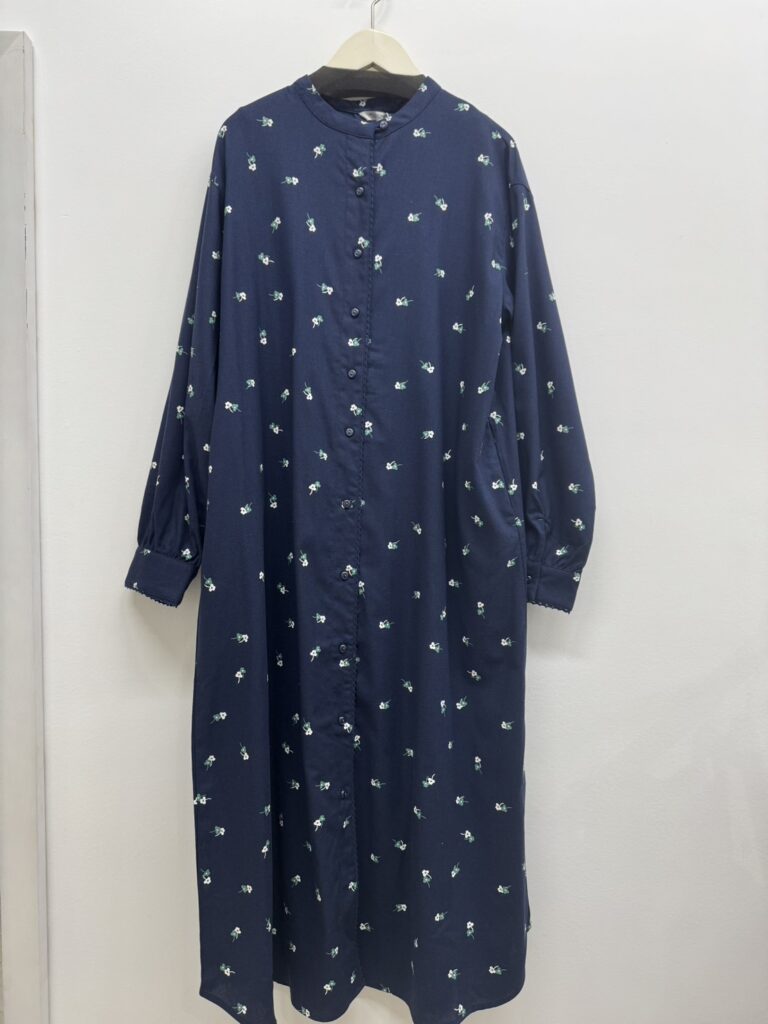 2色のクローバーをランダムにプリントした、オリジナルテキスタイルのワンピース。