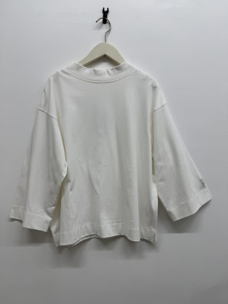 袖の切り替えが個性的な短めのワイドスリーブや、程よくゆとりあるシルエットがラフに着用するだけで抜け感ある大人カジュアルスタイルを作ります。