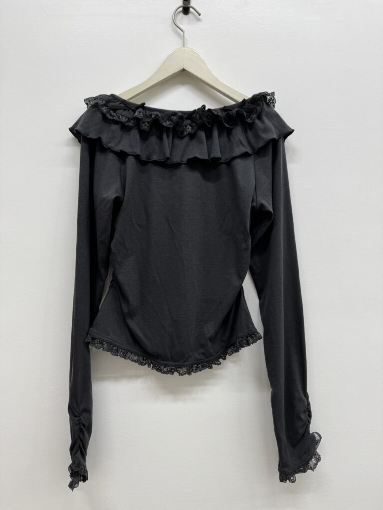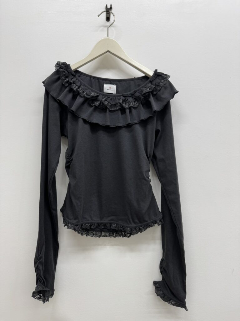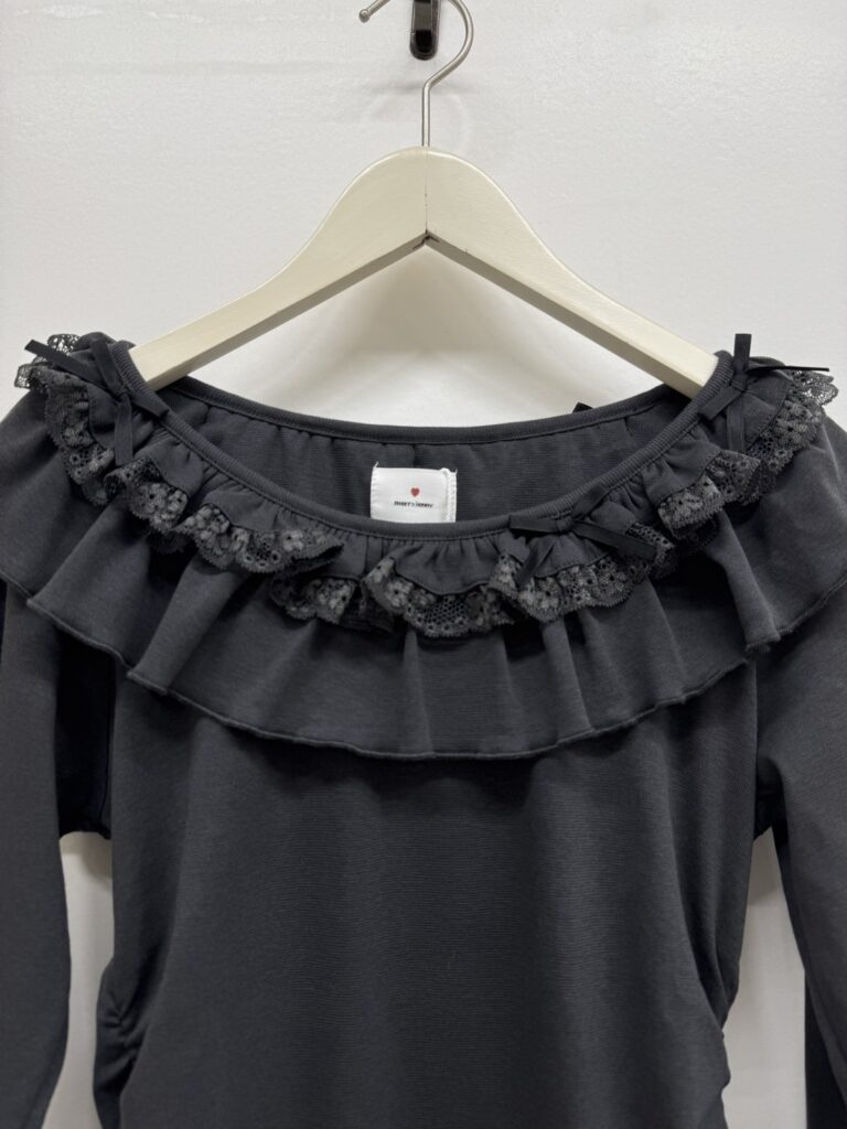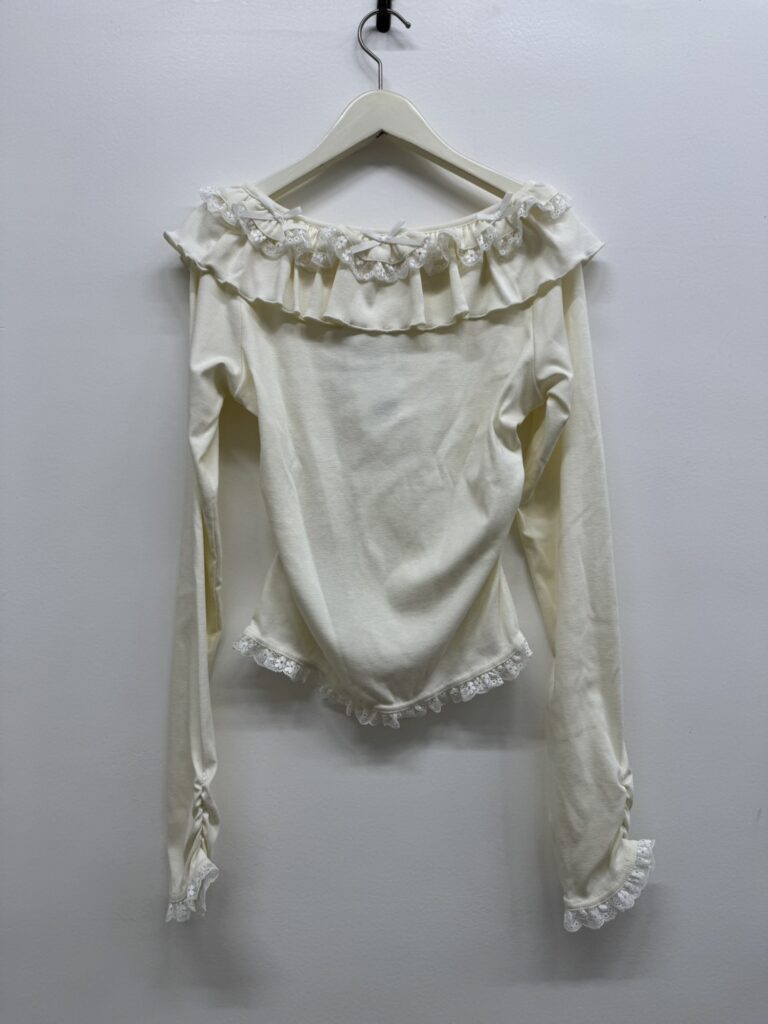 鎖骨がチラッと見えるすっきり感と、リボン&ふりるのデコラティブなバランスでデイリーに活躍できちゃうアイテム!