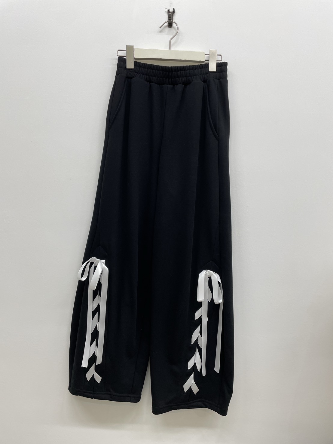 カジュアルなスウェットパンツに、リボンレースアップを取り入れたガーリーなデザインです!