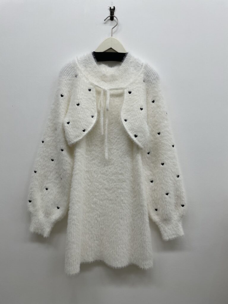 ハート刺繍がかわいいボレロと、ノースリーブですっきり着れるニットワンピのセットアイテムです!